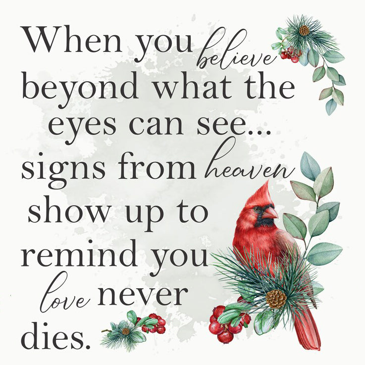 [In Memory Of Loved One Gifts]: When cardinals appear angels are near. This is a thoughtful gift for those missing parents, grandparents who have passed away, it will forever touch their hearts and give them hope,in remembrance of family members, who are in heaven but never far away - and we always have our cherished memories.